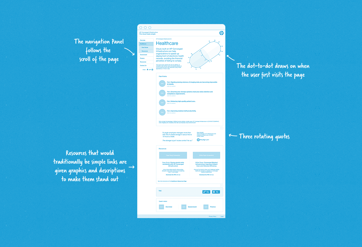 The site needed to speak to three specific verticals; Healthcare, Government and Finance.
